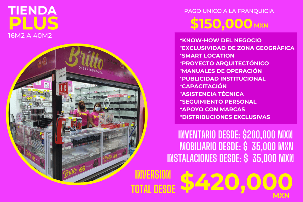 En Brillo Distribuidora tenemos muy bien definido nuestro mercado, Este tipo de de tienda esta destinado a lugares especializados en belleza, tales como plazas con enfoque femenino, centros de ciudades cerca de paradas de camión, se recomienda tener una tienda en este formato por cada 50,000 o 100,000 habitantes.